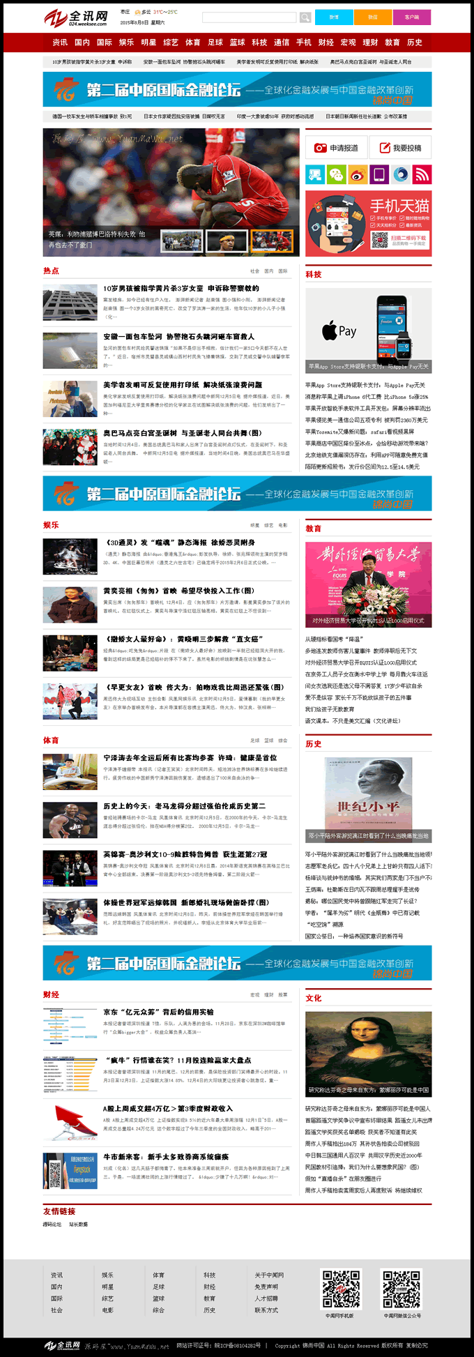 新版全讯网帝国 CMS 网站源码,界面干净整洁,漂亮的大气新闻资讯门户模板,带数据,看到有些新闻类网站的排名很高,内容很多,有的站长只做百度联盟的广告佣金一个月就能做到 9 万多,别羡慕,赶紧找个云主机做起来,研究研究采集走起!