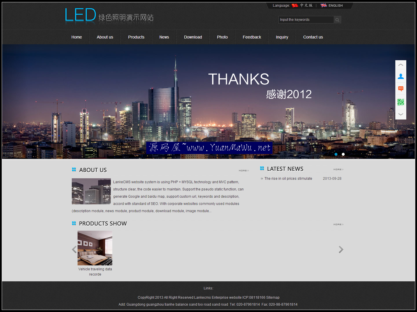 资源名称:Lankecms 蓝科中英文双语企业网站系统 PHP 版 V2.0,PHP 伪静态 html 宽屏 LED 照明公司模板外贸黑色.zip