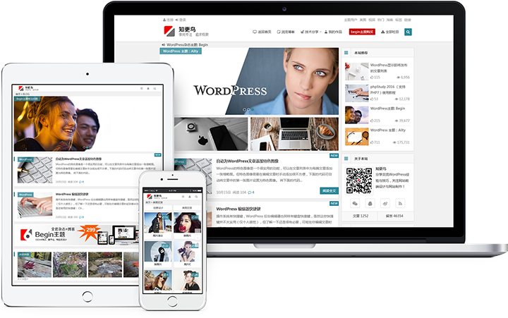 WordPress 主题:Begin,兼容 IE8+、Firefox、Chrome 等现代浏览器,布局多变、支持不同设备、功能设置灵活。价值¥299 元,CSS3+HTML5、扁平化、响应式设计、自定义颜色风格,不依赖任何前端框架,最高支持到 PHP 7.0