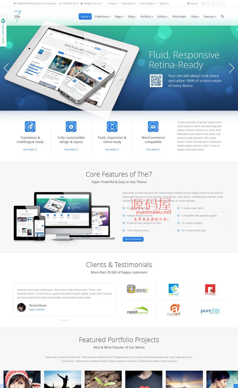 The7 WordPress 主题,是一款企业主题,主题特点:自定义任何元素,可视化布局生成器,6 个预置皮肤,多个幻灯片,seo,WPML 和 WooCommerce 兼容,自适应和视网膜支持等。